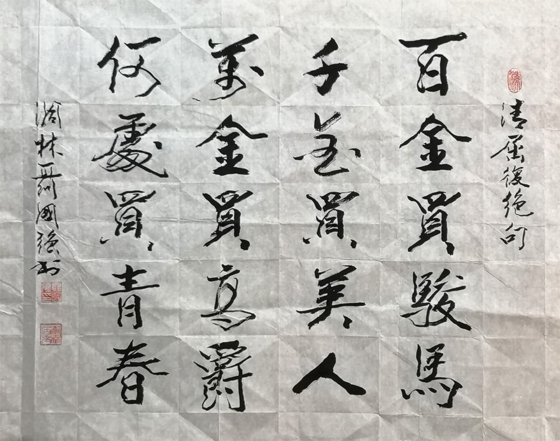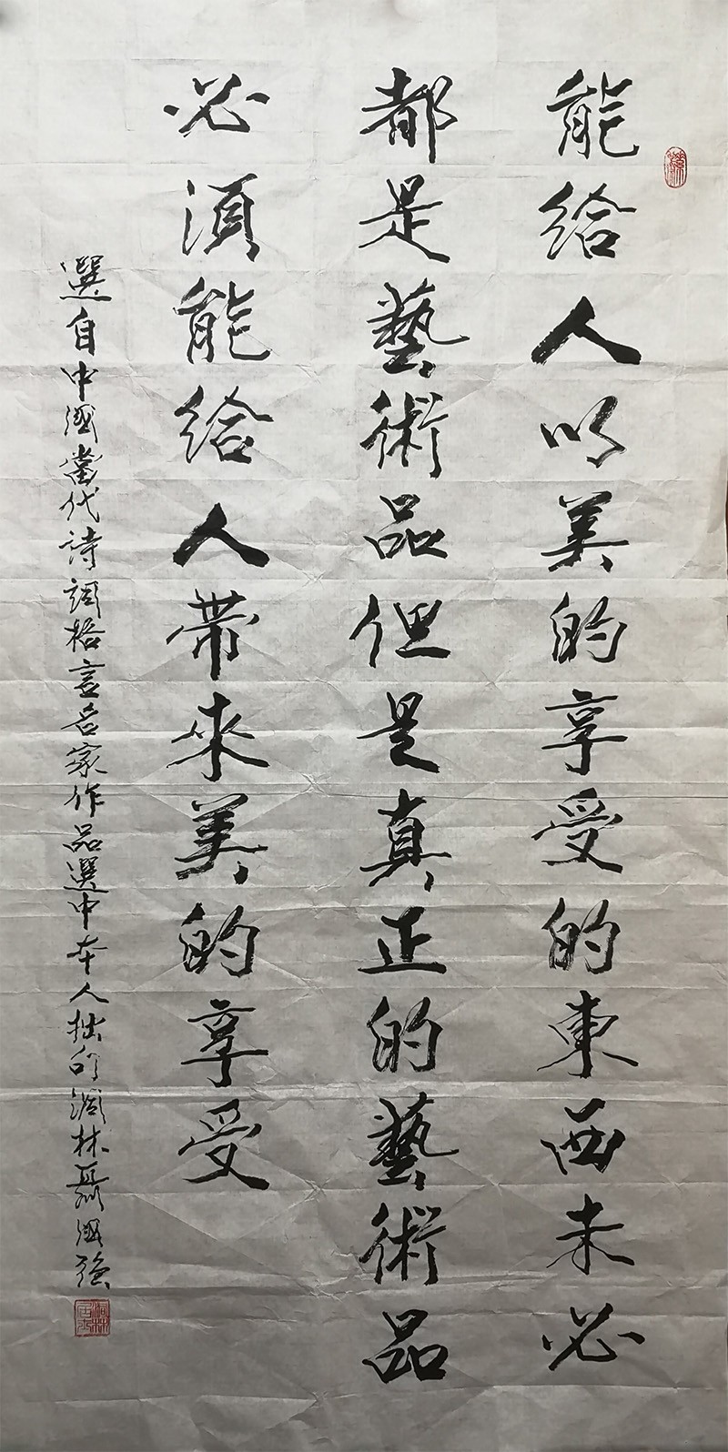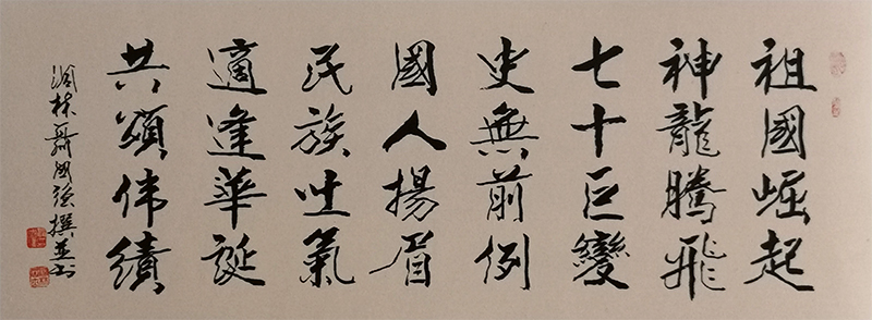 2016年作品和传略入选《一带一路一国礼》和 《中国当代艺坛大师》中国外交十人国礼卷。 2017年,作品又被国家烧制在国礼重器一带一路• 传世国瓷上;同时,作品和传略还应邀被镌刻在北京八达岭中国新长城上,并被授予“中国新长城艺术家”。现为“世界华人艺术网”艺术顾问、世界华人书法家协会荣誉主席、中华国礼出版社荣誉社长、华夏文艺出版社名誉社长、中华国礼中心特邀书画名家、中国书法家协会会员、中国书画艺术研究院院长、人民美术报社副社长、中南海国礼艺术家。 作品欣赏